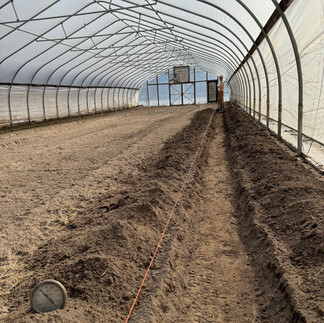 The transformation has begun! It was a big weekend for us on the farm. We are taking advantage of this crazy warm & mild winter and getting a jump start on tunnel prep. That means staking out and shoveling our raised beds. Since we didn't run chickens in this particular tunnel over the winter (they are in two other ones), we were able to till last fall. That saved us time this spring, but it also means we will have to hand spread manure once the beds are prepped. The soil is still a chilly 40 degrees, but if the sun continues to stick around it will warm up in no time!